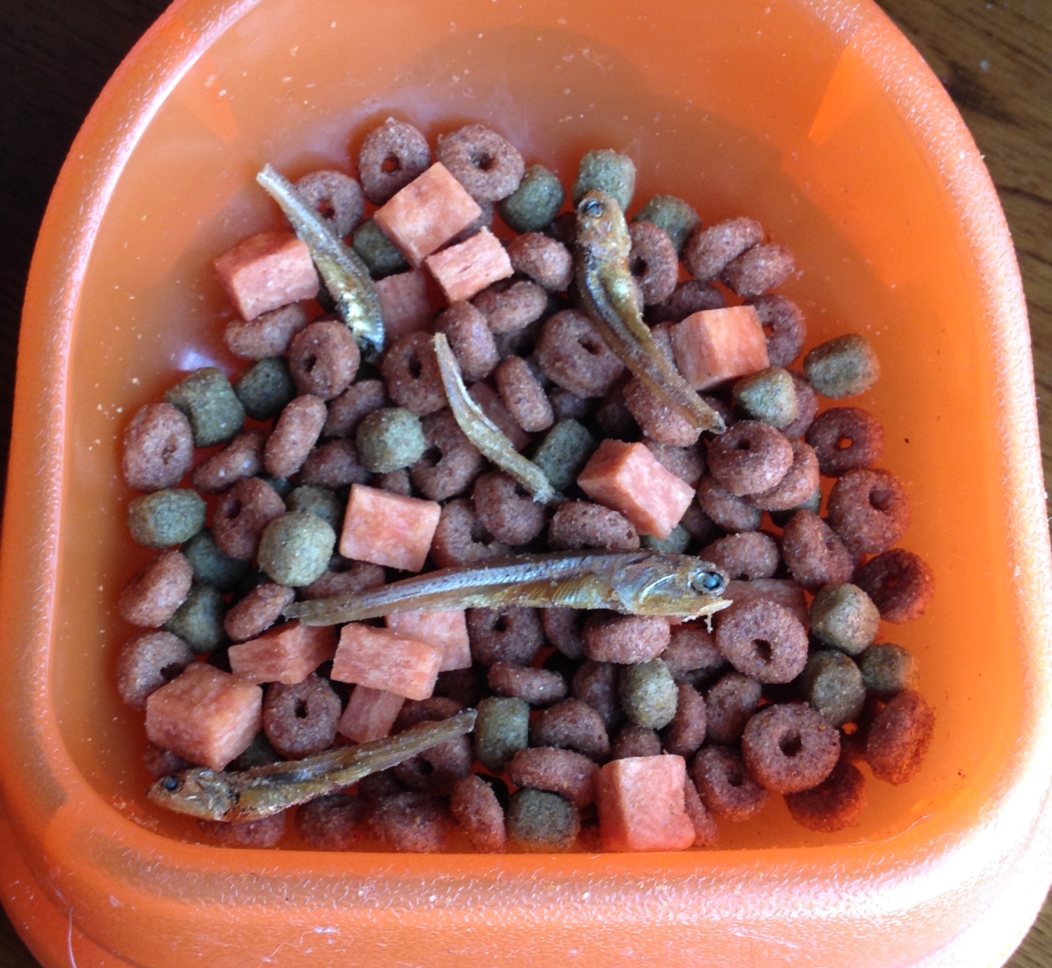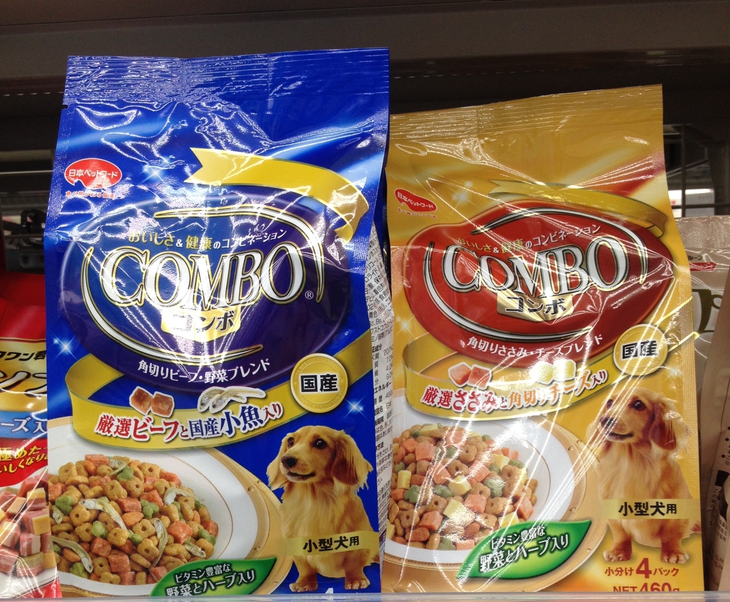 Dog food in Japan can be purchased that has tiny fish in it. It also comes in divided up sealed packages to maintain freshness. I recently brought my toy fox terrier here from the US and most Japanese have never seen this type of dog. You won't find any breed specific foods for them either as there are only a few that seem to be common here. These are the few that I've seen in the breed specific food section: Chihuahua, Toy Poodle, French Bull Dog, Pamaranian, and Shiba Inu.