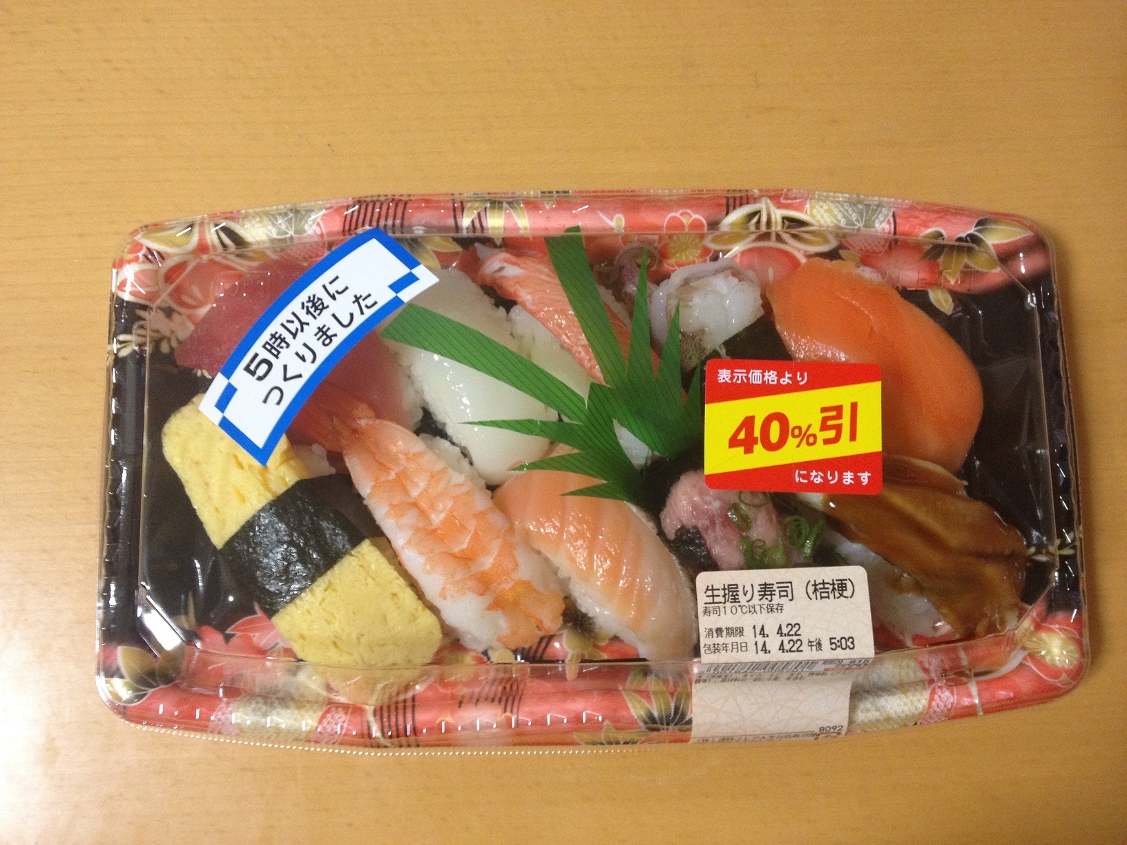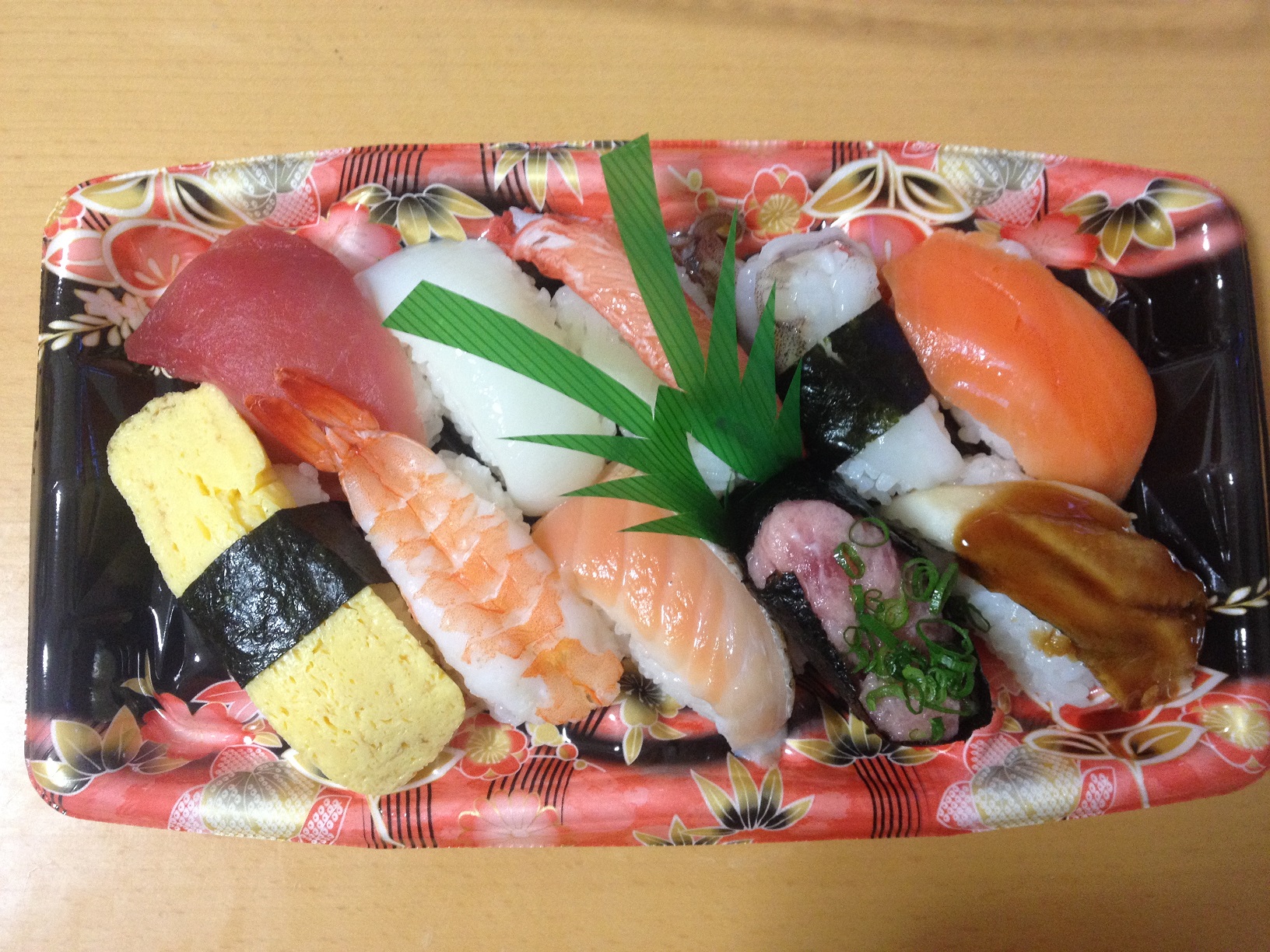 初めて外国人が日本に来た時には、スーパーの寿司や、回転ずしに連れて行ってあげれば、充分楽しんでもらえると思います。さて、寿司食べよっと。